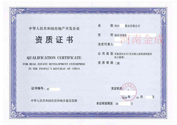 • 房地產(chǎn)二級(jí)資質(zhì)證書