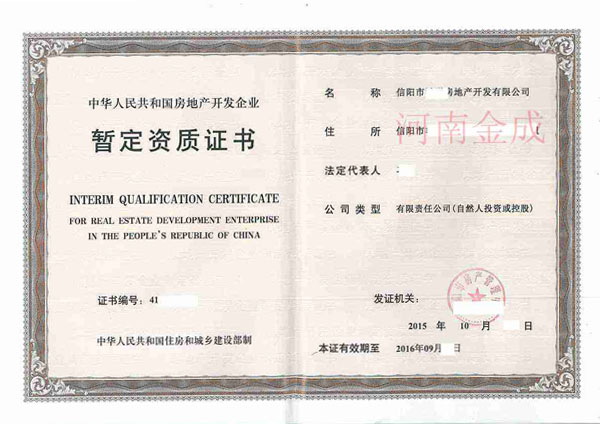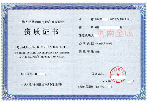 • 房地產(chǎn)三級(jí)資質(zhì)證書