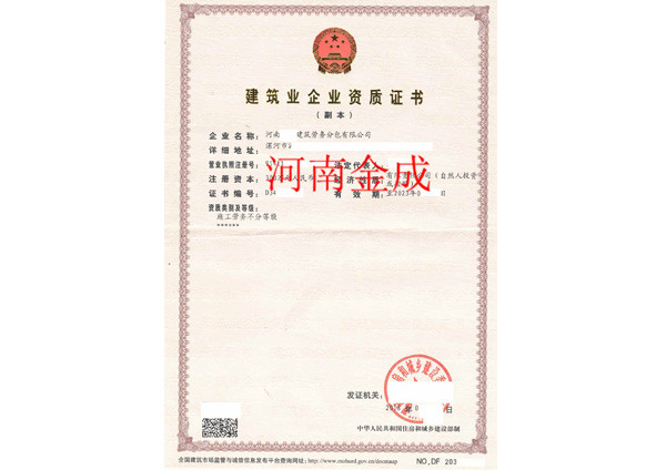 • 建筑業(yè)企業(yè)資質(zhì)證書正副