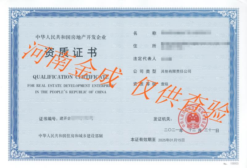 • 房地產(chǎn)四級(jí)資質(zhì)證書